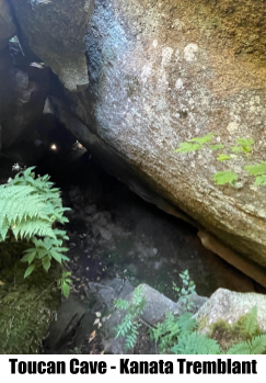 Départ en bas de la grotte avec deux bonnes prises. Effectuer trois mouvements pour rejoindre une arqué et dynamiser vers le bac final