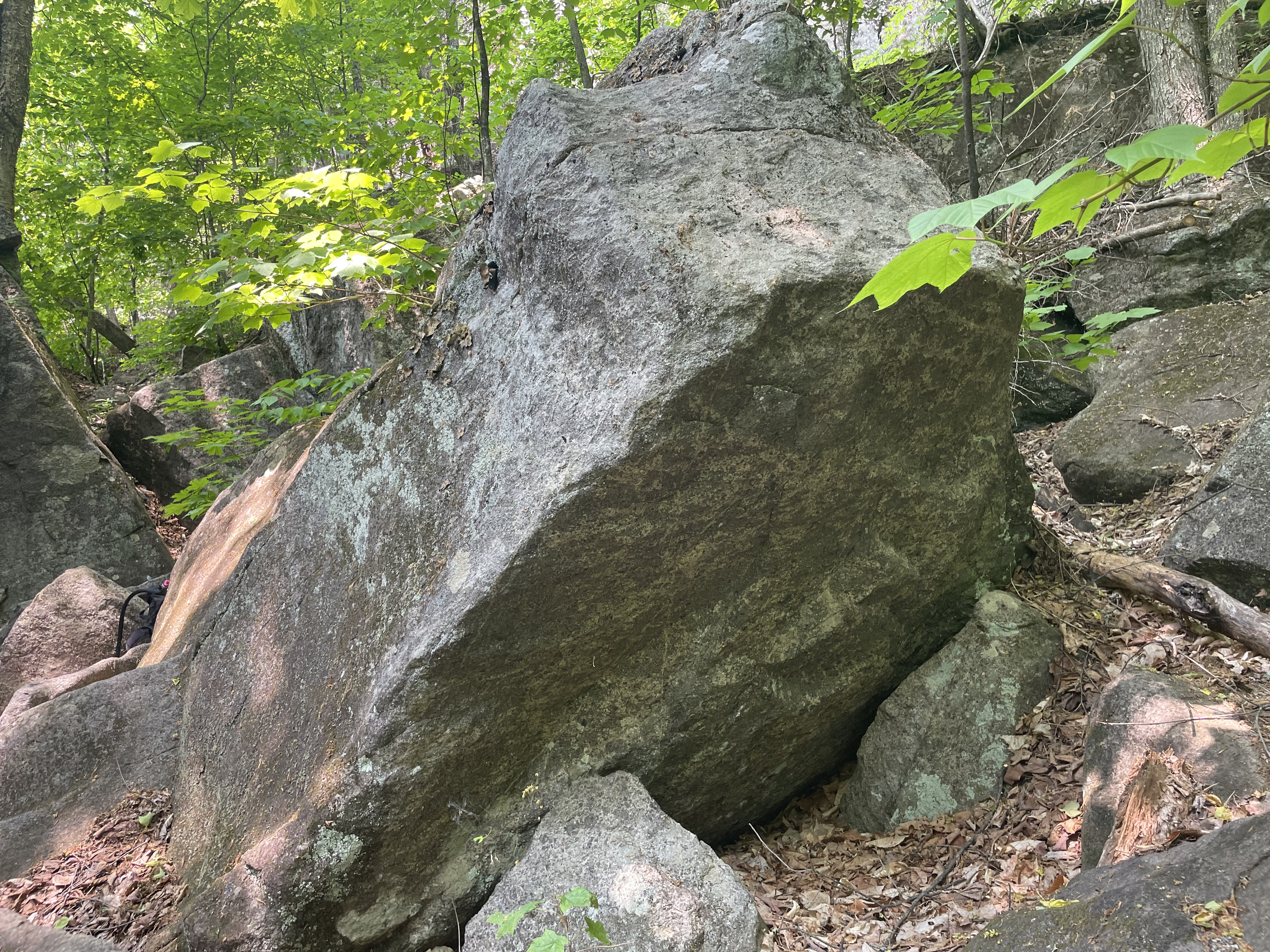 Localisation : à 10 mètres de Combustion derrière (voir vidéo) Vidéo 1 : Andrew Hendry COMBUSTION Départ assis avec les mains sur la réglettes. Un long mouvement pour atteindre l'arête du bloc puis le top.