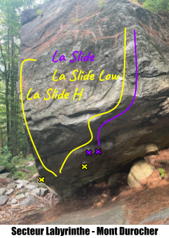 Départ debout en plein milieu du dévers sur les bonnes prises et grimper tout droit