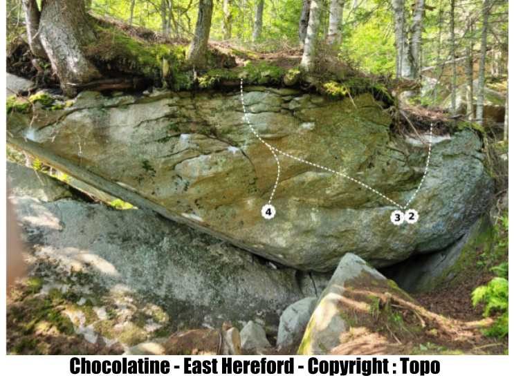 (Ligne 2) Départ avec les mains sur le jug, grimper tout droite et finir avec les racines.