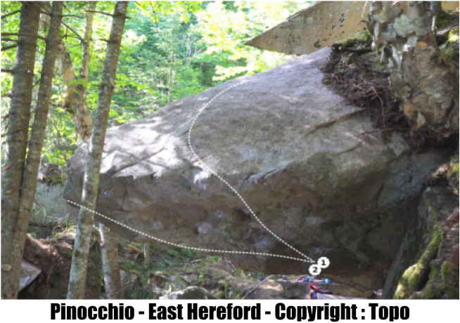 (Ligne 1) Départ assis. Main droite sur le jug et main gauche en under dans la cave. Quelques mouvements difficiles vers la gauche pour atteindre la pince/pinch. Terminer avec un réta sur la slab et sortir.