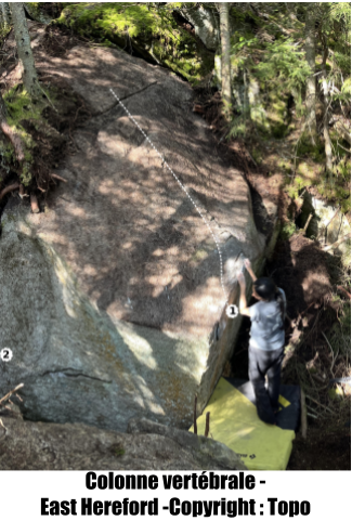 Départ sur la tablette, rejoindre la fissure à gauche et se rétablir sur la dalle a droite.