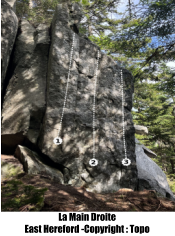 -(Ligne 2) Départ assis au centre du bloc. Grimper au centre en évitant les arêtes du bloc. Sortir tout droit